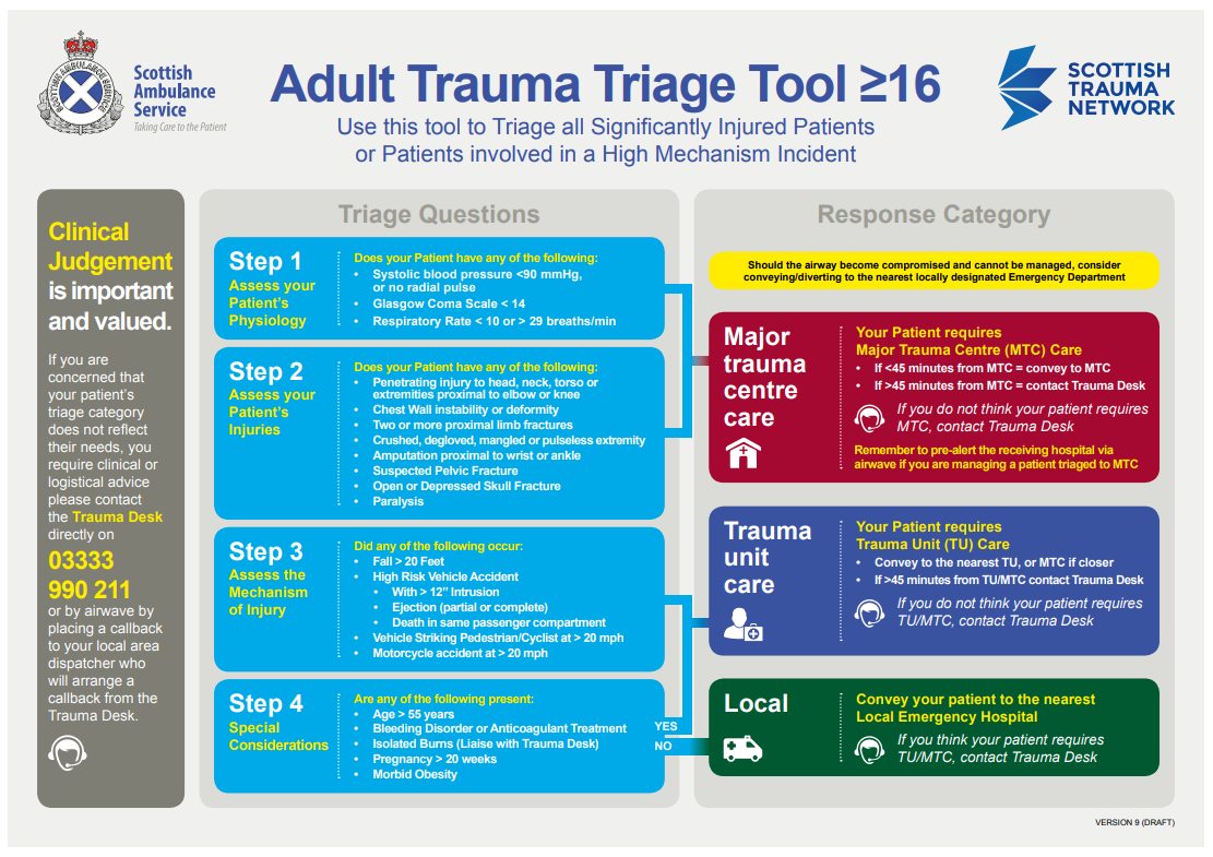 If you have any questions or queries on how the Major Trauma Tools are used in Scotland, please contact either the STN nss.scottrauma@nhs.scot or SAS.MTTTfeedback@sas.nhs.scot
